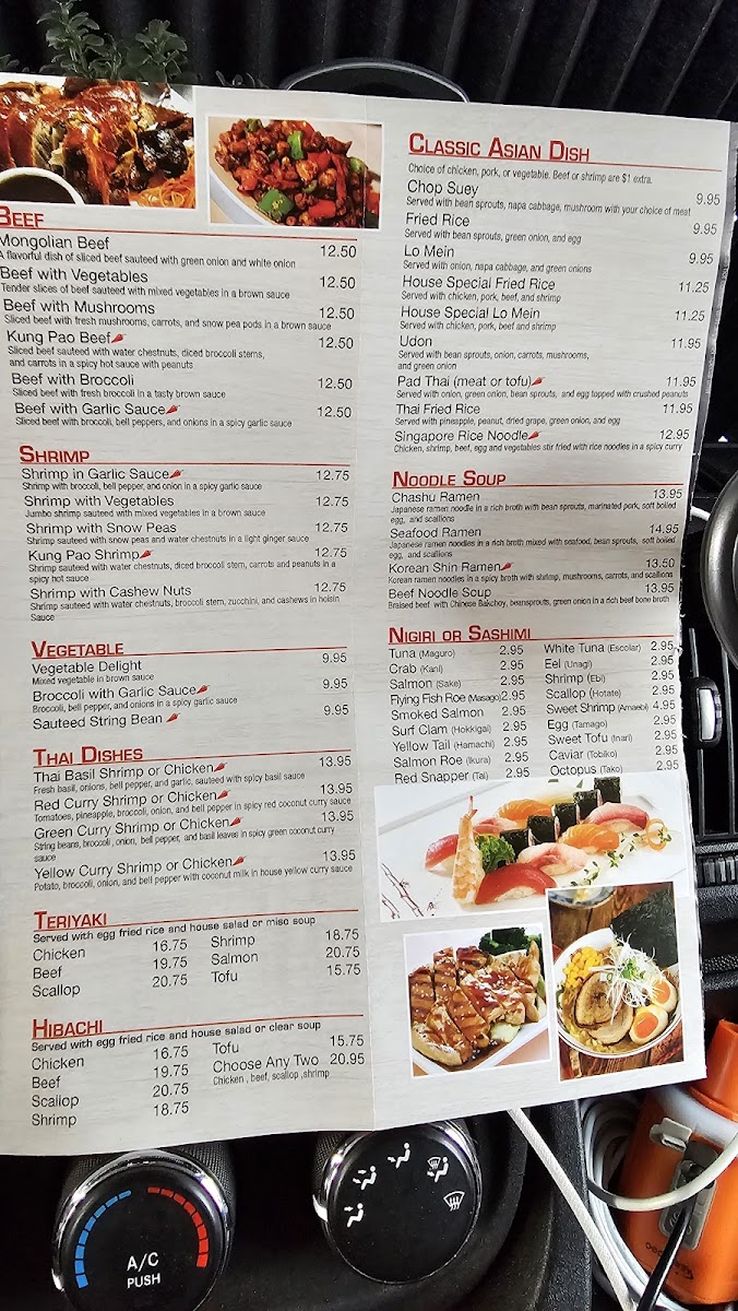 The menu is a treasure trove for food enthusiasts, featuring enticing appetizers like Crab Rangoon and Thai Coconut Shrimp, each meticulously prepared to highlight their unique flavors. For the main course, options such as Mongolian Beef and Hibachi Chicken are sure to satisfy, with generous portions and delightful presentations that evoke a blend of comfort and sophistication.